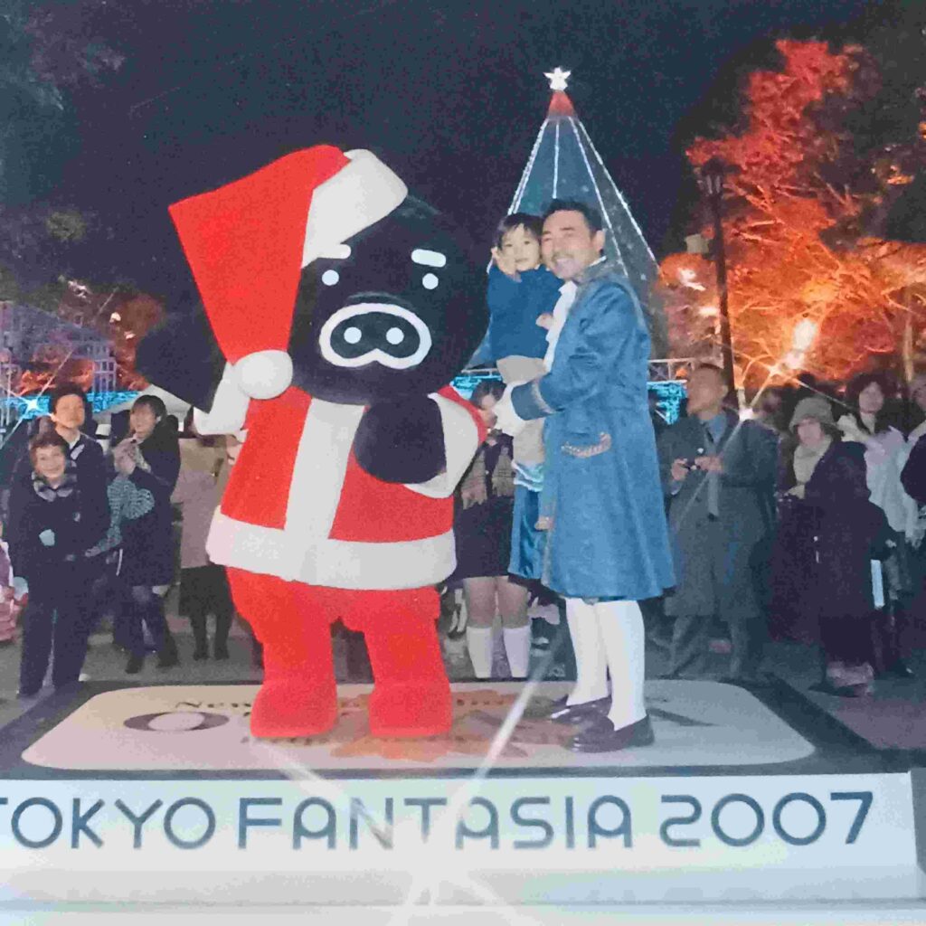 ですが、幼い息子を抱いているコスプレ野郎こそ、実はモーリーなのです。何の写真かは放送で